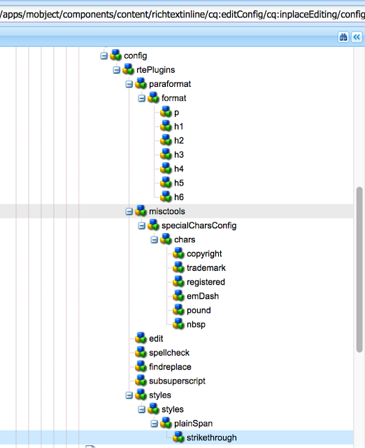 · Select rtePlugins node and create a node Name: findreplace, Type: nt:unstructured