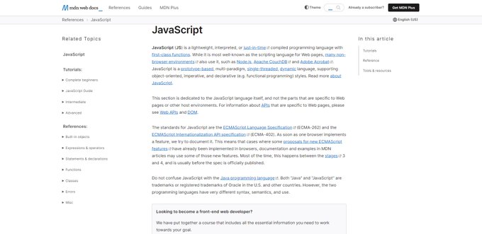 8. MDN Javascript tutorial An official JavaScript reference with explanations for functions, classes, objects, etc. Included advanced tutorials on topics such as inheritance, prototypes, memory management, and more. https://developer.mozilla.org/en-US/docs/Web/JavaScript…